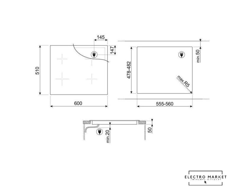 индукционная на 4 конфорки, cтеклокерамика, независимая установка, размеры (ШхГ): 80x52 см