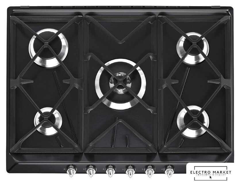 газовая на 5 конфорок, нержавеющая сталь, мощность: 11300 Вт, автоматический электроподжиг, газ-контроль, решетки: чугун, независимая установка, размеры (ШхГ): 72.5x51 см