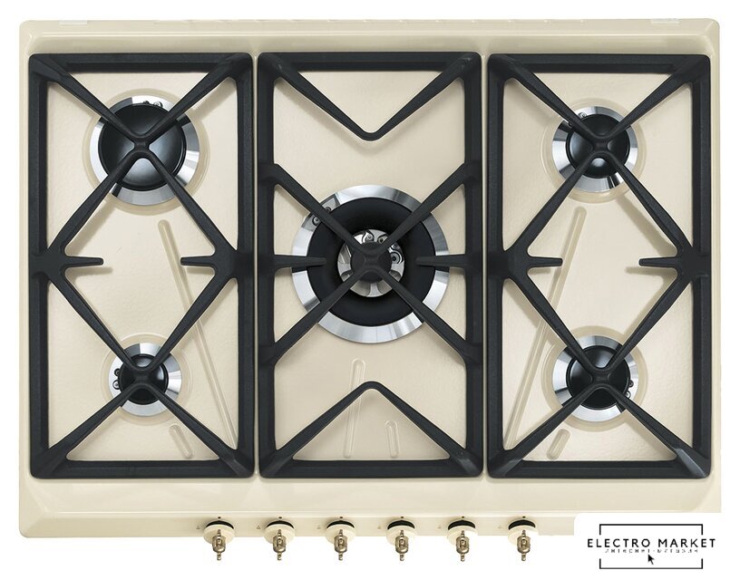 Подробная информация о конфорках | Передняя левая – 1,05 кВтЗадняя левая – 2,55 кВтЦентральная – 5,0 (3,9 +1,1) кВтПередняя правая – 1,65 кВтЗадняя правая – 1,65 кВт |