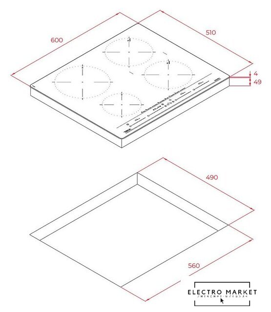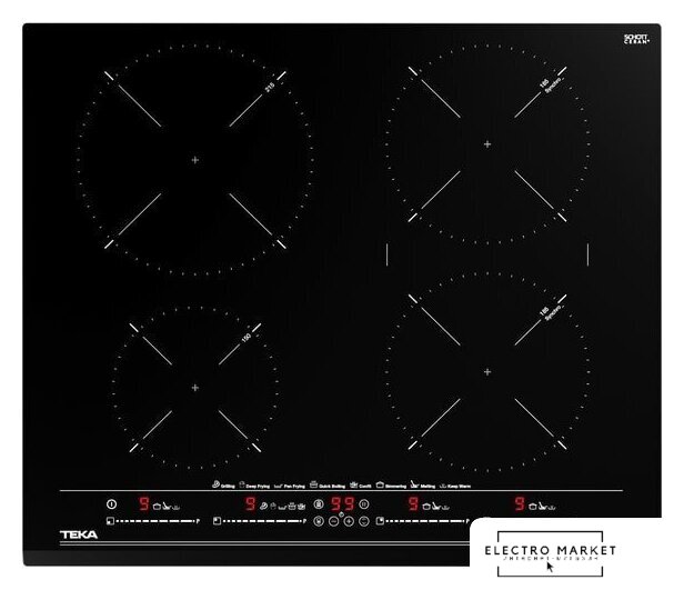 индукционная на 4 конфорки, cтеклокерамика, мощность: 7400 Вт, автоматика закипания, независимая установка, размеры (ШхГ): 58x51 см