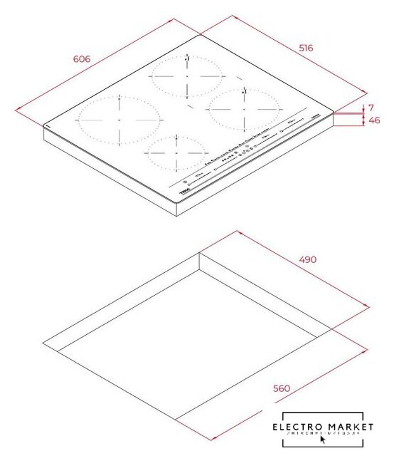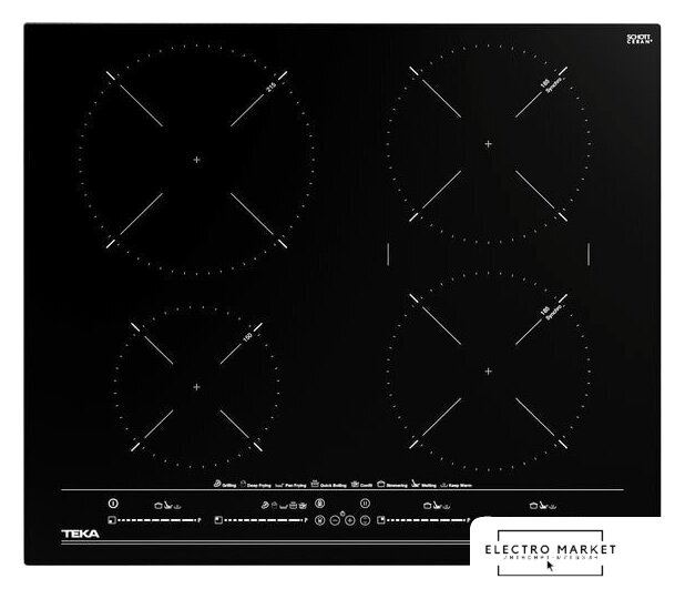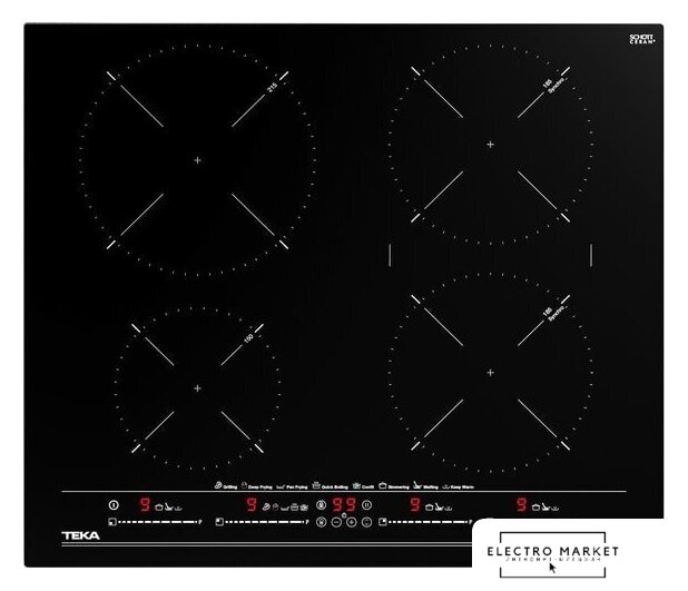 | Подробная информация о конфорках | 1 индукционная зона Ø 215 мм2 индукционные зоны Ø 185 мм1 индукционная зона Ø 150 мм |