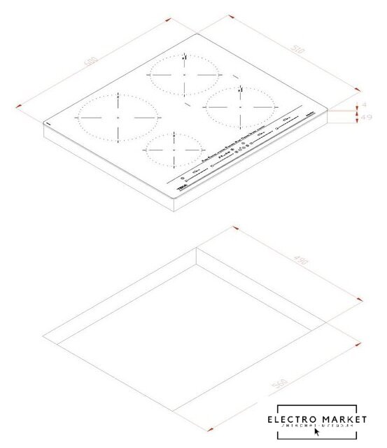 индукционная на 4 конфорки, cтеклокерамика, независимая установка, размеры (ШхГ): 59x51 см