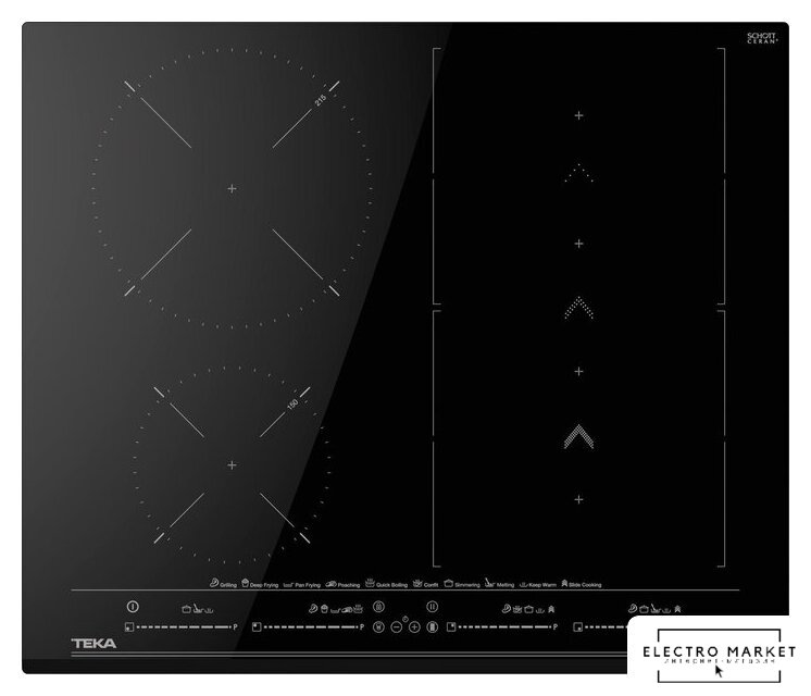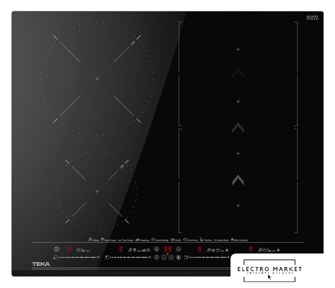 Подробная информация о конфорках | 2 Flex зоны 228 X 200 мм (1,75/2,0 кВт)1 индукционная зона Ø 215 мм (2,1/3,0 кВт)1 индукционная зона Ø 150 мм (1,2/1,6 кВт) |