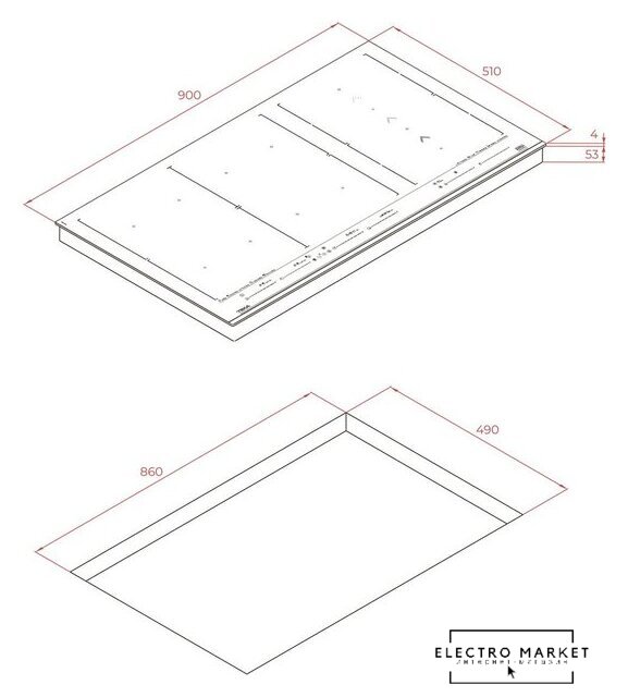 индукционная на 4 конфорки, cтеклокерамика, мощность: 7400 Вт, независимая установка, размеры (ШхГ): 75x51 см