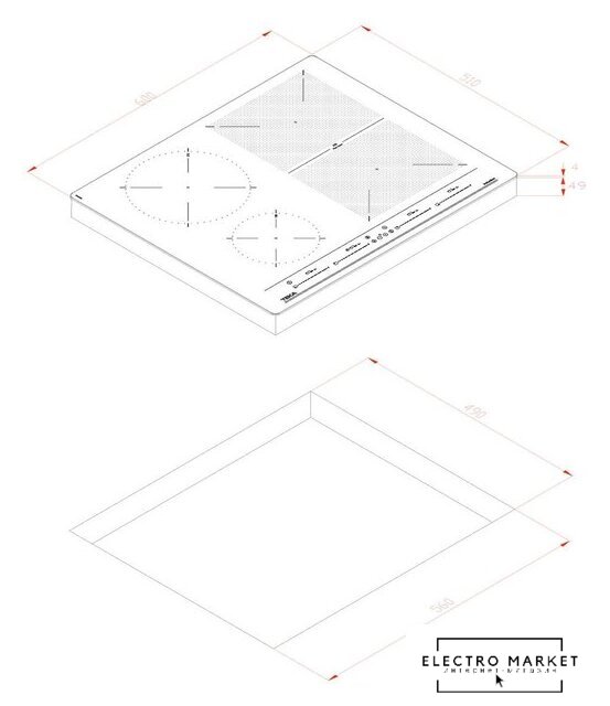 индукционная на 4 конфорки, cтеклокерамика, мощность: 7350 Вт, независимая установка, размеры (ШхГ): 59x52 см