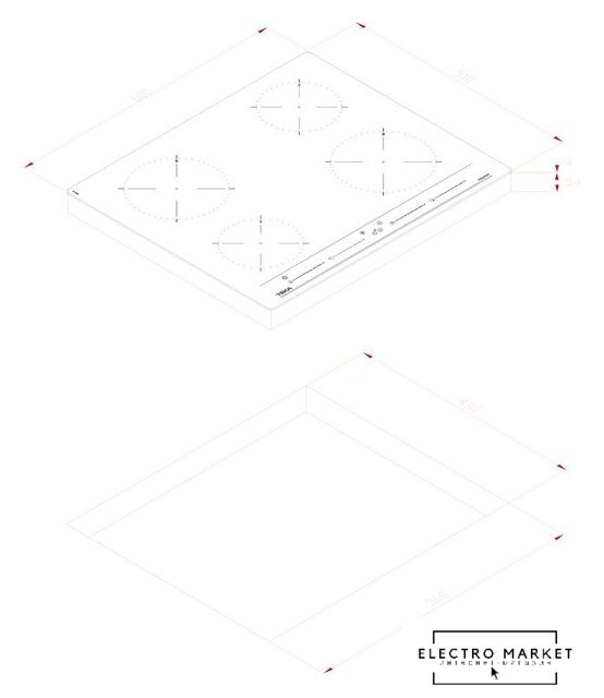 индукционная на 4 конфорки, cтеклокерамика, мощность: 7350 Вт, независимая установка, размеры (ШхГ): 59x52 см