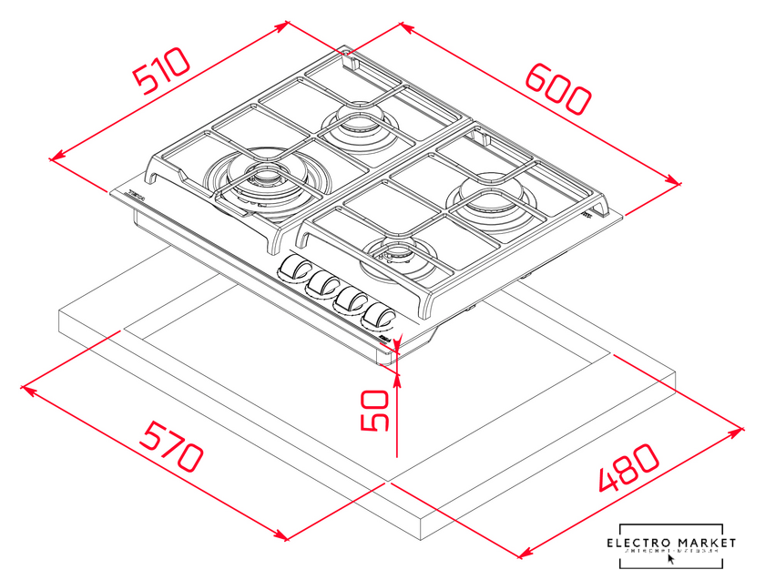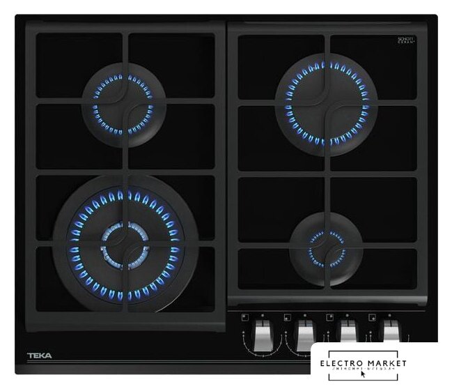 газовая на 4 конфорки, cтеклокерамика, мощность: 9550 Вт, автоматический электроподжиг, газ-контроль, решетки: чугун, независимая установка, размеры (ШхГ): 60x51 см