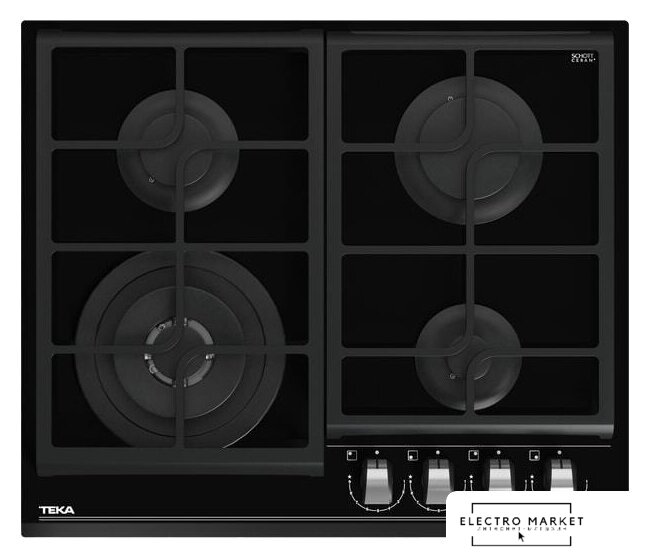 газовая на 4 конфорки, cтеклокерамика, автоматический электроподжиг, газ-контроль, решетки: чугун, независимая установка, размеры (ШхГ): 60x51 см