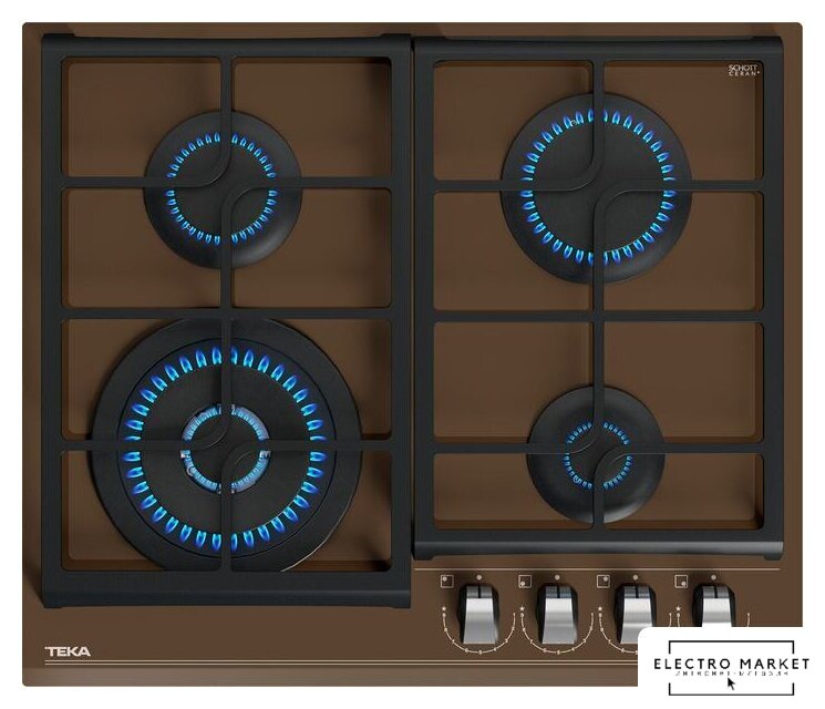газовая на 4 конфорки, cтеклокерамика, автоматический электроподжиг, газ-контроль, решетки: чугун, независимая установка, размеры (ШхГ): 60x51 см