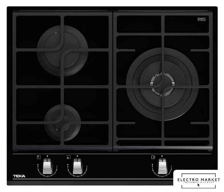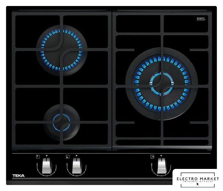 Подробная информация о конфорках | 1 горелка с двойным кольцом (4 кВт)1 быстрая горелка (2,8 кВт)1 вспомогательная горелка (1 кВт) |