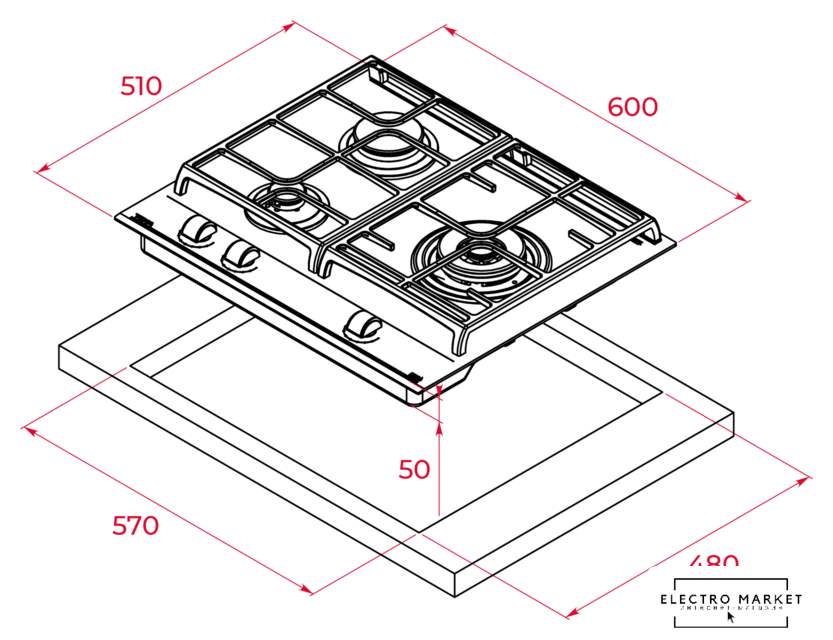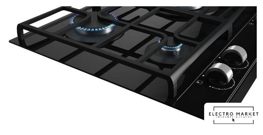 газовая на 4 конфорки, cтеклокерамика, мощность: 9550 Вт, автоматический электроподжиг, газ-контроль, решетки: чугун, независимая установка, размеры (ШхГ): 60x51 см