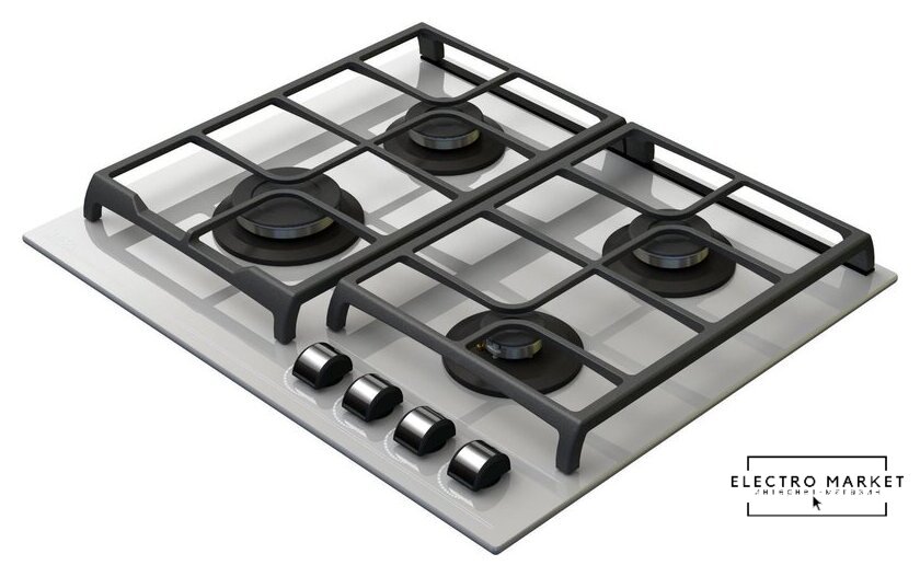 Подробная информация о конфорках | 1 быстрая горелка (2,8 кВт)2 полубыстрых горелки (по 1,75 кВт)1 вспомогательная горелка (1 кВт) |
