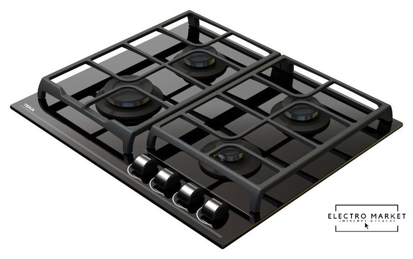 газовая на 4 конфорки, закаленное стекло, мощность: 7500 Вт, автоматический электроподжиг, газ-контроль, решетки: чугун, независимая установка, размеры (ШхГ): 59x52 см
