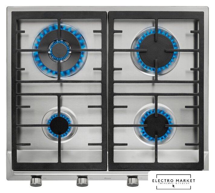 газовая на 4 конфорки, нержавеющая сталь, мощность: 8500 Вт, автоматический электроподжиг, газ-контроль, решетки: чугун, независимая установка, размеры (ШхГ): 60x51 см