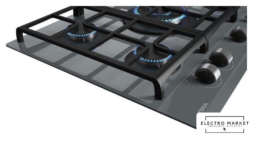 газовая на 4 конфорки, закаленное стекло, мощность: 7500 Вт, автоматический электроподжиг, газ-контроль, решетки: чугун, независимая установка, размеры (ШхГ): 60x51 см