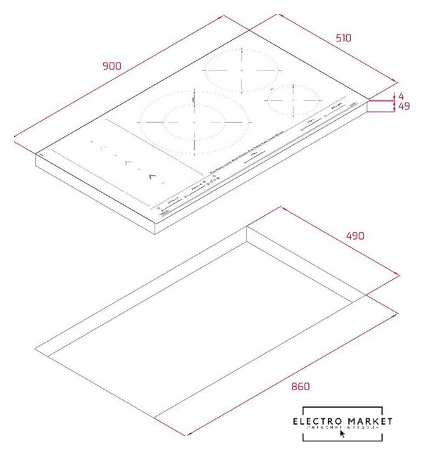 индукционная на 4 конфорки, cтеклокерамика, мощность: 7400 Вт, автоматика закипания, независимая установка, размеры (ШхГ): 60x51 см