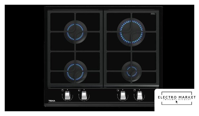газовая на 4 конфорки, закаленное стекло, мощность: 7300 Вт, автоматический электроподжиг, газ-контроль, решетки: чугун, независимая установка, размеры (ШхГ): 60x51 см