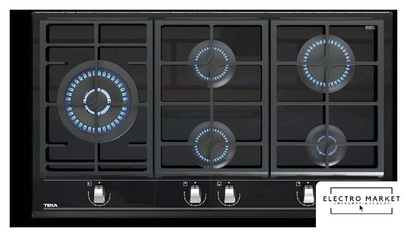 Подробная информация о конфорках | Газовые горелки: 4 кВт, 2,8 кВт, 1,75 кВт, 1,4 кВт, 1 кВт |