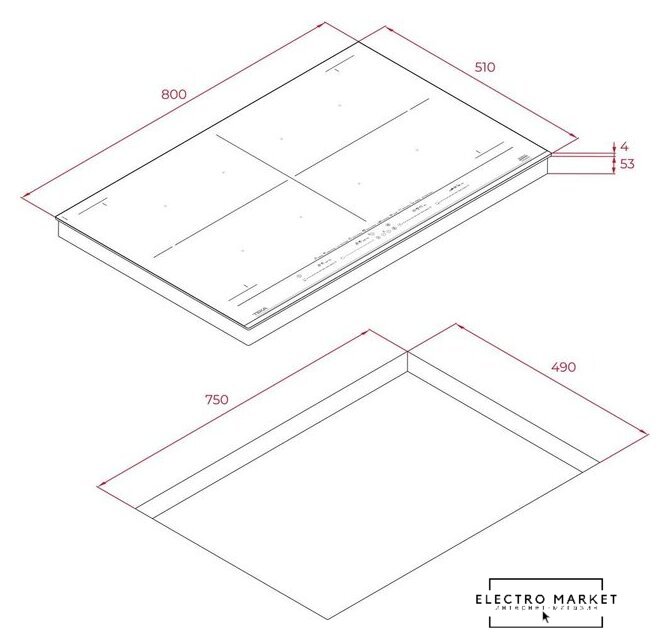 индукционная на 4 конфорки, cтеклокерамика, мощность: 7400 Вт, независимая установка, размеры (ШхГ): 59.6x51 см