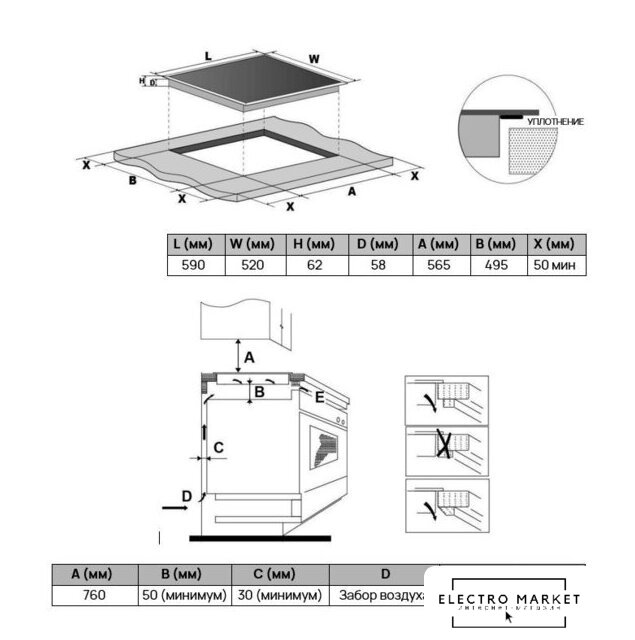 HiLight на 4 конфорки, cтеклокерамика, мощность: 6300 Вт, независимая установка, размеры (ШхГ): 59.5x53 см