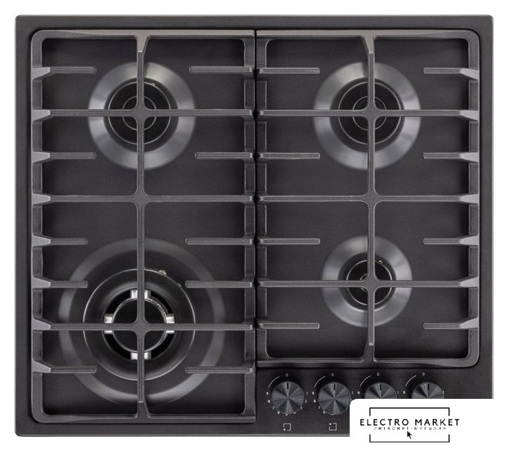 газовая на 4 конфорки, эмалированная сталь, мощность: 8150 Вт, автоматический электроподжиг, газ-контроль, решетки: чугун, независимая установка, размеры (ШхГ): 60x52 см