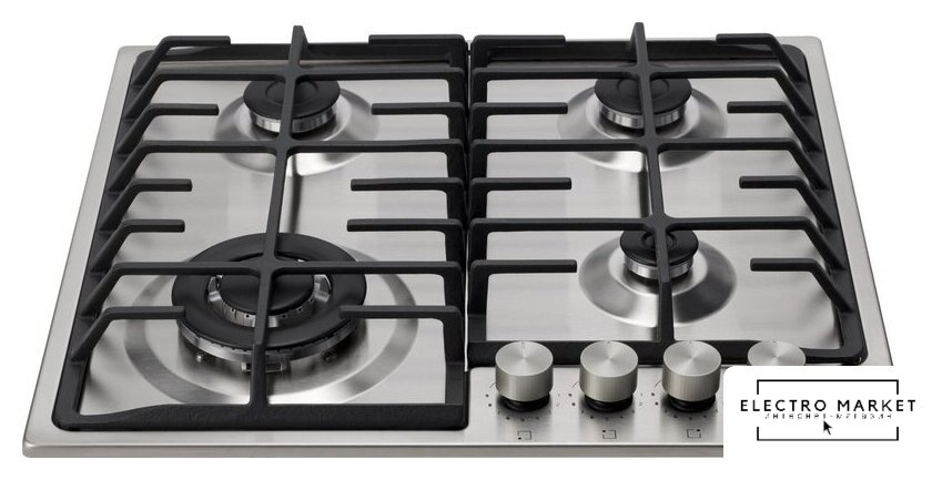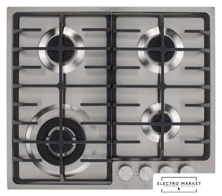 газовая на 4 конфорки, закаленное стекло, автоматический электроподжиг, газ-контроль, решетки: чугун, независимая установка, размеры (ШхГ): 60x52 см