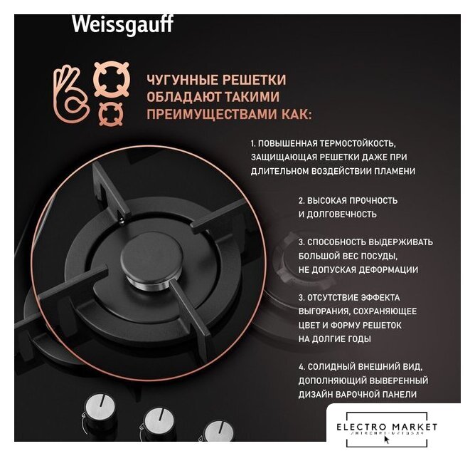 | Подробная информация о конфорках | 1*3,5/1*1,7/1*0,9 кВт |