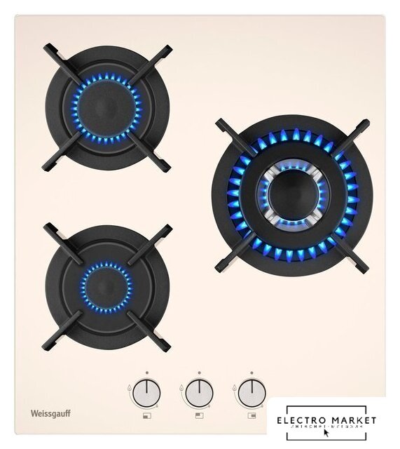 газовая на 3 конфорки, закаленное стекло, мощность: 6550 Вт, автоматический электроподжиг, газ-контроль, решетки: эмалированная сталь, независимая установка, размеры (ШхГ): 46x51 см