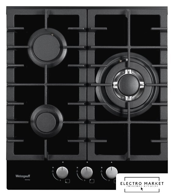 Подробная информация о конфорках | Горелка повышенной мощности - 3,4 кВтСредняя конфорка - 1,8 кВтМаленькая конфорка - 1,0 кВт |