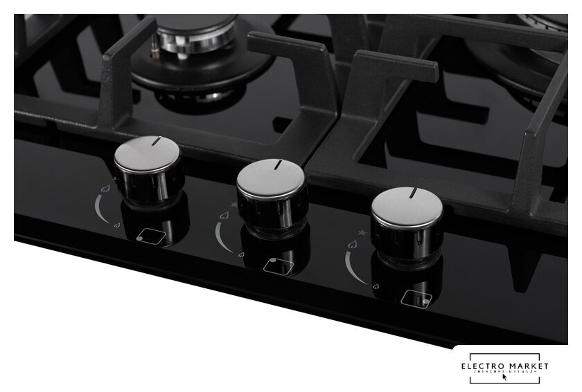 газовая на 4 конфорки, закаленное стекло, мощность: 7600 Вт, автоматический электроподжиг, газ-контроль, решетки: чугун, независимая установка, размеры (ШхГ): 60x52.5 см