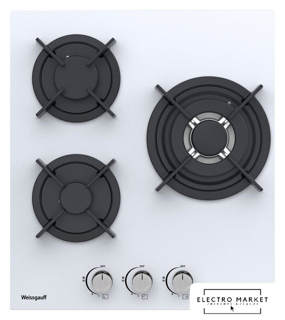 газовая на 3 конфорки, закаленное стекло, мощность: 6400 Вт, автоматический электроподжиг, газ-контроль, решетки: чугун, независимая установка, размеры (ШхГ): 45x52 см