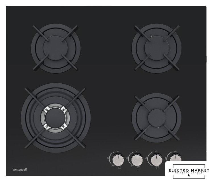 газовая на 4 конфорки, закаленное стекло, мощность: 7800 Вт, газ-контроль, решетки: чугун, независимая установка, размеры (ШхГ): 60x52 см