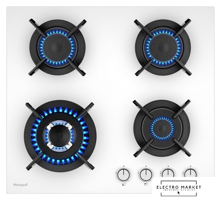 газовая на 4 конфорки, закаленное стекло, мощность: 9300 Вт, автоматический электроподжиг, газ-контроль, решетки: чугун, независимая установка, размеры (ШхГ): 59x51.5 см