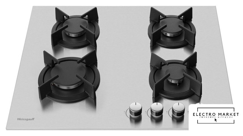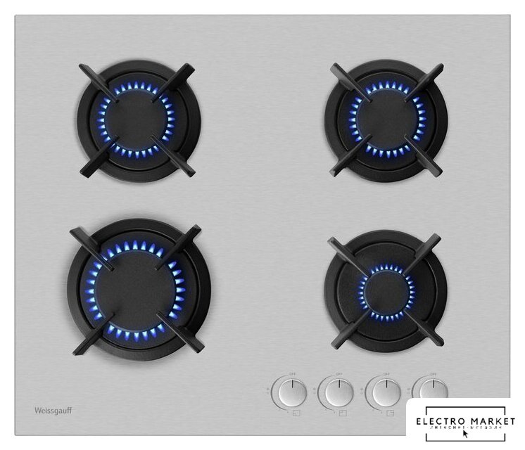 газовая на 4 конфорки, нержавеющая сталь, мощность: 7800 Вт, автоматический электроподжиг, газ-контроль, решетки: чугун, независимая установка, размеры (ШхГ): 58x51 см