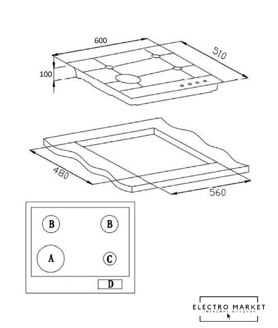 Подробная информация о конфорках | 1*2,4/2*1,8/1*1,0 кВт |