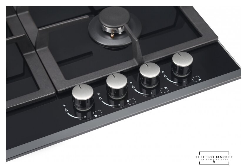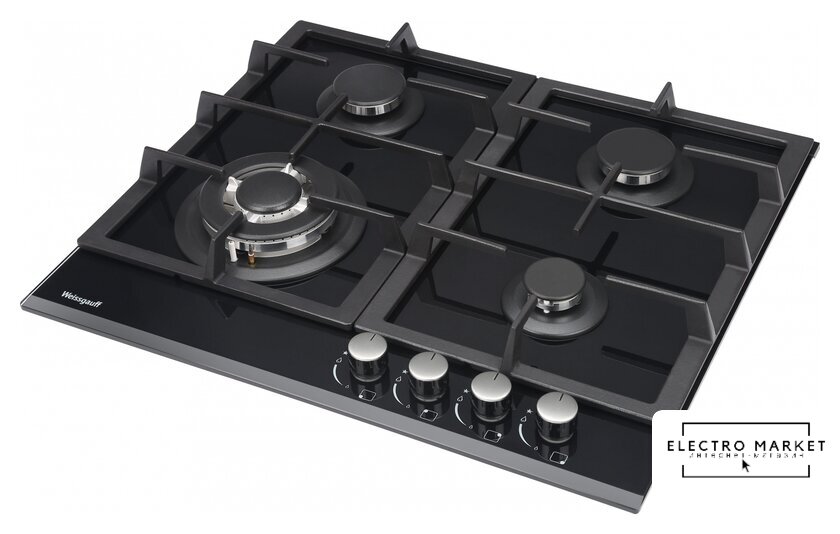 газовая на 4 конфорки, закаленное стекло, мощность: 8000 Вт, автоматический электроподжиг, газ-контроль, решетки: чугун, независимая установка, размеры (ШхГ): 60x51 см