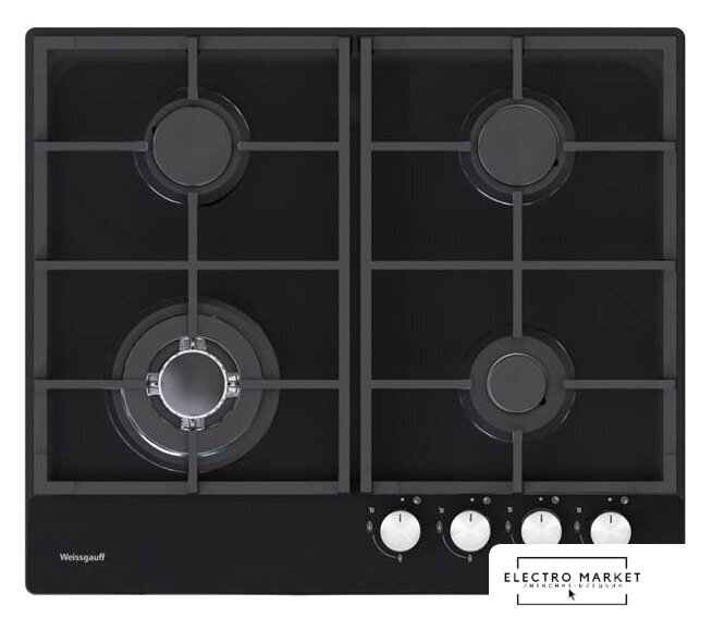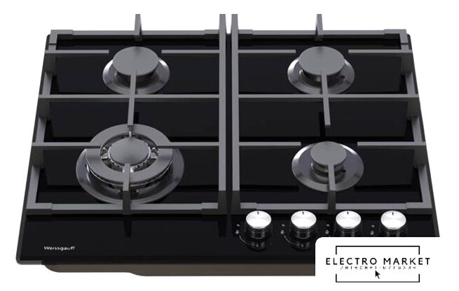 газовая на 4 конфорки, закаленное стекло, мощность: 7400 Вт, автоматический электроподжиг, газ-контроль, решетки: чугун, независимая установка