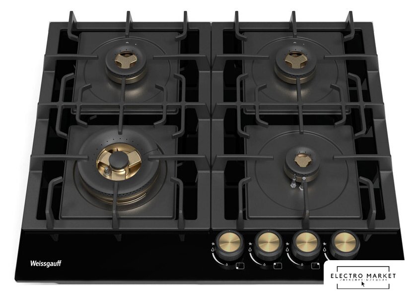 газовая на 4 конфорки, закаленное стекло, мощность: 7450 Вт, автоматический электроподжиг, газ-контроль, решетки: чугун, независимая установка, размеры (ШхГ): 59x52 см