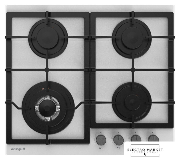 газовая на 4 конфорки, закаленное стекло, газ-контроль, решетки: чугун, независимая установка, размеры (ШхГ): 60x52 см