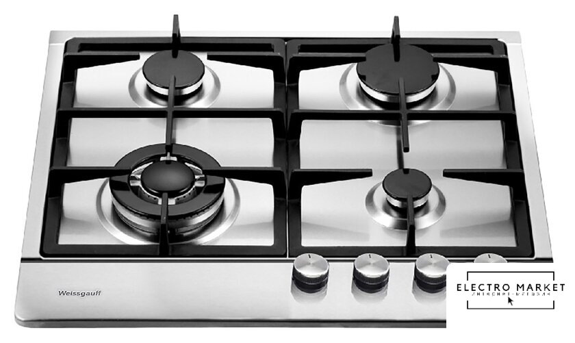 газовая на 4 конфорки, закаленное стекло, мощность: 8000 Вт, автоматический электроподжиг, газ-контроль, решетки: чугун, независимая установка, размеры (ШхГ): 60x52 см