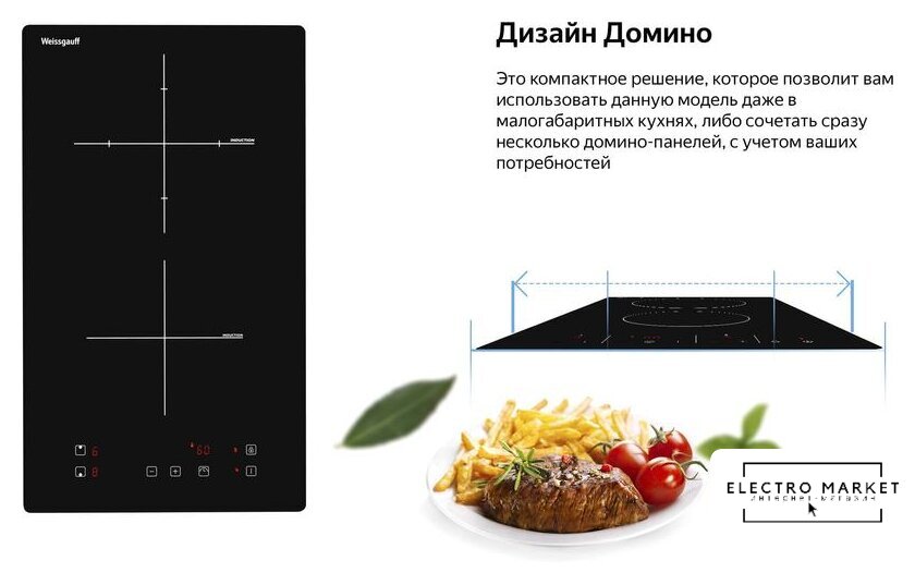 индукционная на 3 конфорки, cтеклокерамика, мощность: 6100 Вт, независимая установка, размеры (ШхГ): 59x52 см