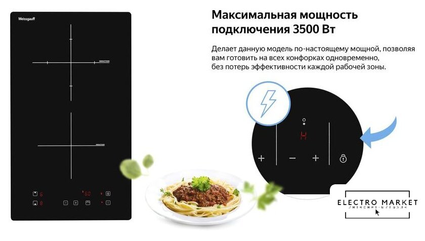 индукционная на 2 конфорки, cтеклокерамика, мощность: 3500 Вт, независимая установка, размеры (ШхГ): 29x52 см