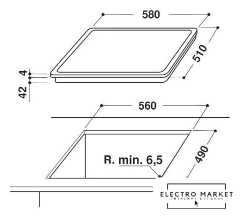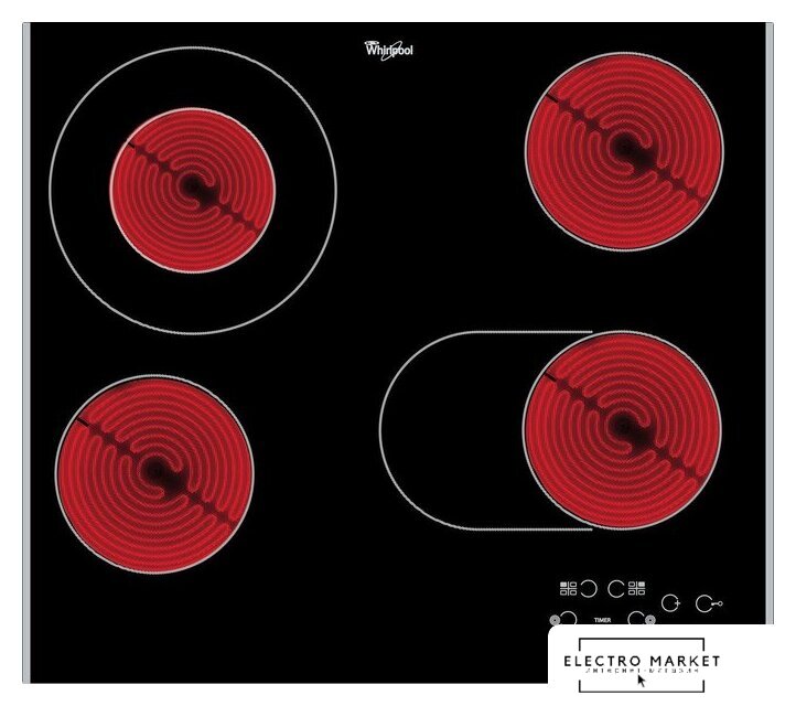 HiLight на 4 конфорки, cтеклокерамика, мощность: 6000 Вт, независимая установка, размеры (ШхГ): 58.3x51.3 см