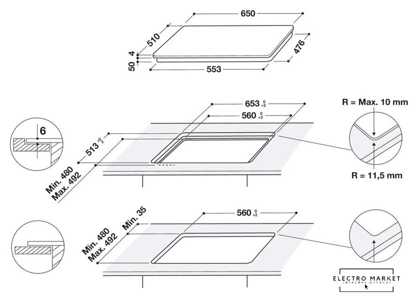 индукционная на 4 конфорки, cтеклокерамика, мощность: 7200 Вт, автоматика закипания, независимая установка, размеры (ШхГ): 59x51 см