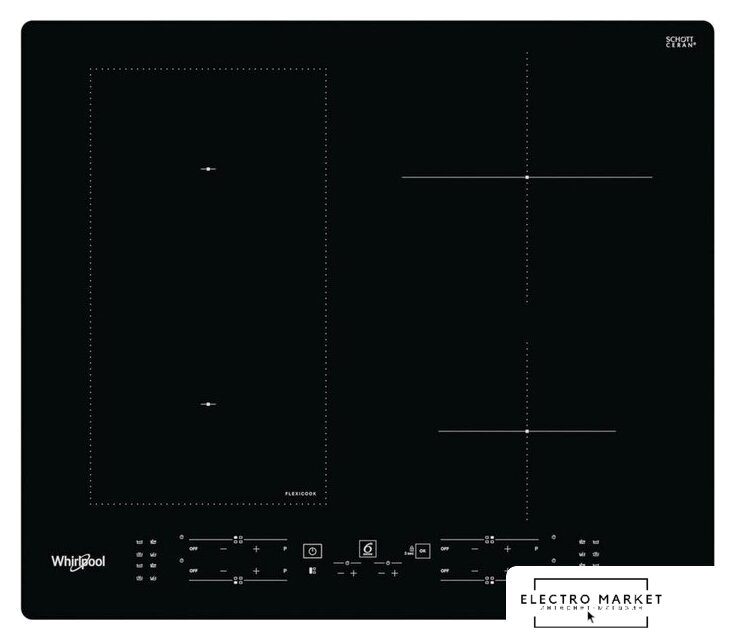 индукционная на 4 конфорки, cтеклокерамика, мощность: 7400 Вт, независимая установка, размеры (ШхГ): 59x52 см