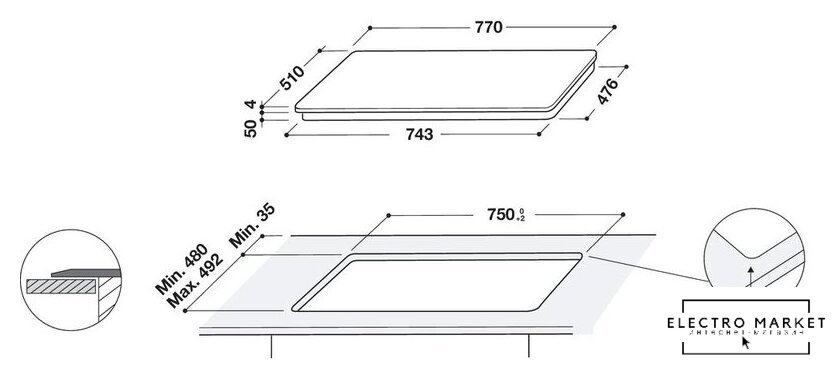 индукционная на 4 конфорки, cтеклокерамика, мощность: 7350 Вт, независимая установка, размеры (ШхГ): 59x52 см