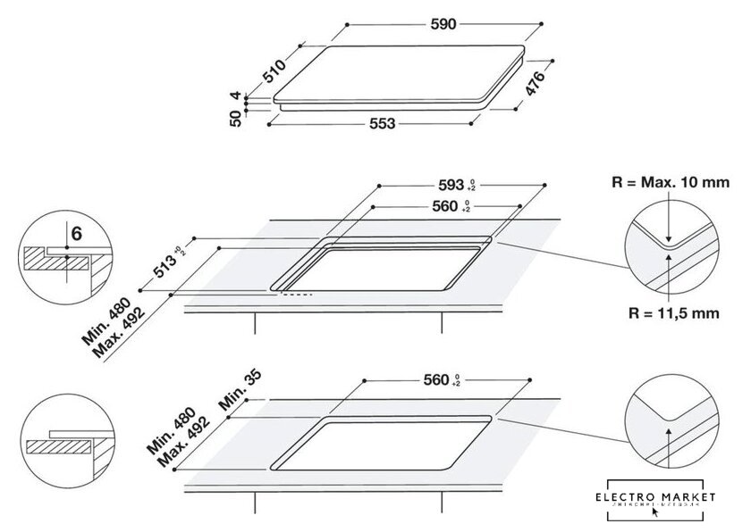 индукционная на 4 конфорки, cтеклокерамика, мощность: 6900 Вт, независимая установка, размеры (ШхГ): 59.2x52.2 см