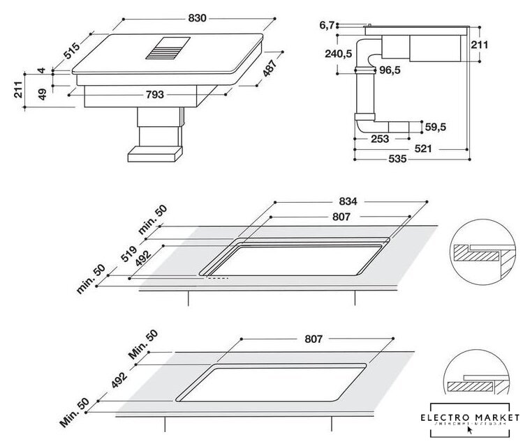 индукционная на 4 конфорки, cтеклокерамика, мощность: 7400 Вт, независимая установка, размеры (ШхГ): 83x51 см