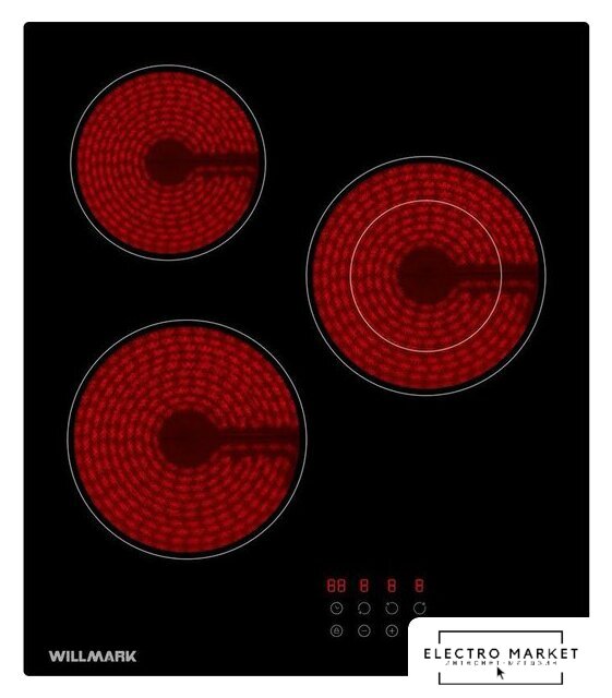 HiLight на 3 конфорки, cтеклокерамика, мощность: 5000 Вт, независимая установка, размеры (ШхГ): 45x52 см