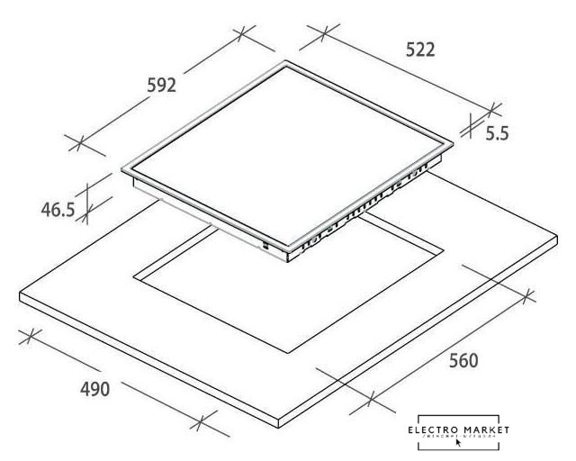 HiLight на 4 конфорки, cтеклокерамика, мощность: 6000 Вт, независимая установка, размеры (ШхГ): 59x52 см